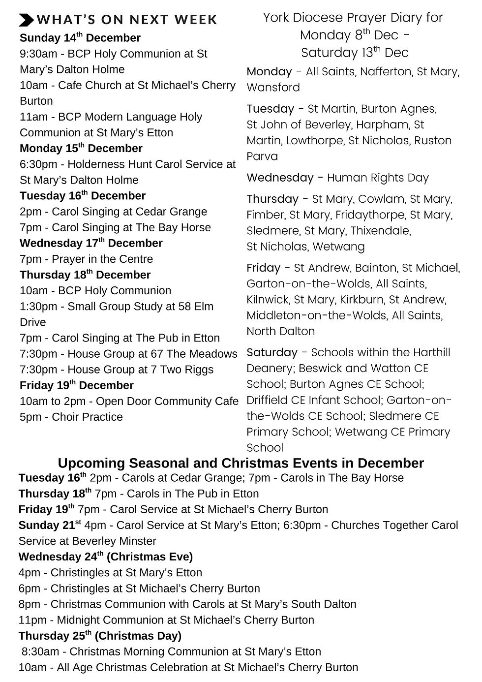 Week Beginning 7th December 2025